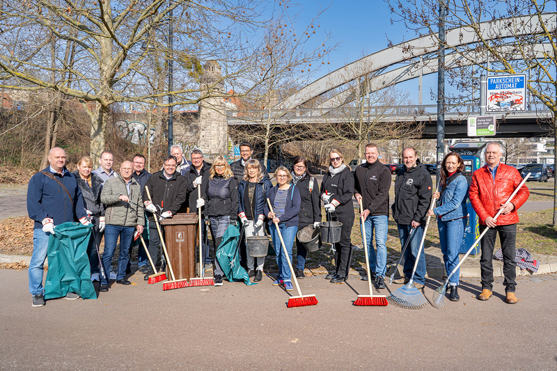 Foto: Start der Aktion „Magdeburg putzt sich!“ 2026: Gruppenfoto der Auftaktveranstaltung (Copyright: Landeshauptstadt Magdeburg, Lara Eckstein)