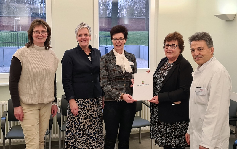 Von links nach rechts: Landtagsabgeordnete Juliane Kleemann, Pflegedirektorin Beate Wogawa, Kaufmännische Direktorin Ines Donner, Gesundheitsministerin Petra Grimm-Benne, Ärztlicher Direktor Jörg Fahlke