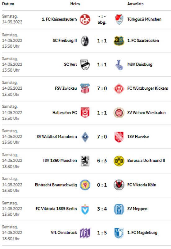 14 Mai 2022 3. Liga: 38. SPIELTAG (Ergebnisse & Abschlusstabelle) von pdppredaktion | Veröffentlicht in: FuĂball | 0 Die Begegnungen:Abschlusstabelle:Quelle DFB