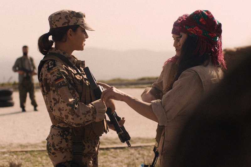 Foto: Rojda lernt zwei Perschmerga KÀmpferinnen kennen. © Pallas Film/The Match Factory/ ARTE G.E.I.E.