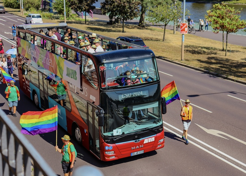 Der CSD-Umzug startet um 13 Uhr am Rathaus und führt durch die Innenstadt. Währenddessen kann es zu kurzfristigen Einschränkungen im Straßenbahn- und Busverkehr kommen, vereinzelt auch zu Verspätungen.