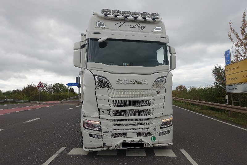 Trotz eines Ausweichversuchs des Sattelzugfahrers kam es zum Zusammenstoß. Der Pkw wurde durch die Kollision gedreht, der Fahrer im Fahrzeuginneren eingeklemmt und leicht verletzt. Er konnte durch Rettungskräfte befreit und vor Ort medizinisch versorgt werden. An beiden Fahrzeugen entstand Sachschaden.