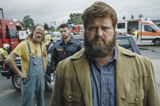 Foto v.l.: Tankwart Harry (Andreas Leopold Schadt), Polizist Oscar (Oscar Keymer) und Behringer (Antoine Monot).
