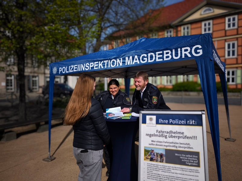 Ein Präventionsstand auf dem Nicolaiplatz in Wernigerode wurde von vielen Besucherinnen und Besuchern aufgesucht. Die Polizeibeamten gaben interessierten Bürgern Informationen zu Themen wie dem richtigen Tragen von Fahrradhelmen, Vorschriften bei der Nutzung von E-Scootern sowie besserer Sichtbarkeit im Straßenverkehr.