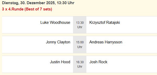 Darts Live – Achtelfinale, WM 2026 (SPORT1 13:30 – 17:30 Uhr)