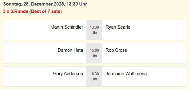 Darts Live – WM 2026 – 3. Runde mit Martin Schindler (SPORT1 13:30 – 17:30 Uhr)