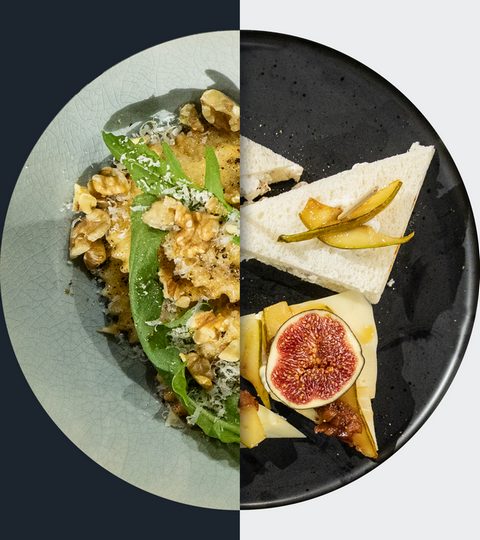 Zweierlei Tramezzini: Mit karamellisierter Birne, Mascarpone-Grappa-Creme und Feigen-Chutney & Mit KĂ€se-Weinbrand-Creme und WalnĂŒssen