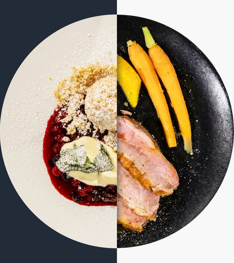 Barbarie-Entenbrust mit Orangensauce, Pastinakenpüree und Butter-Möhren