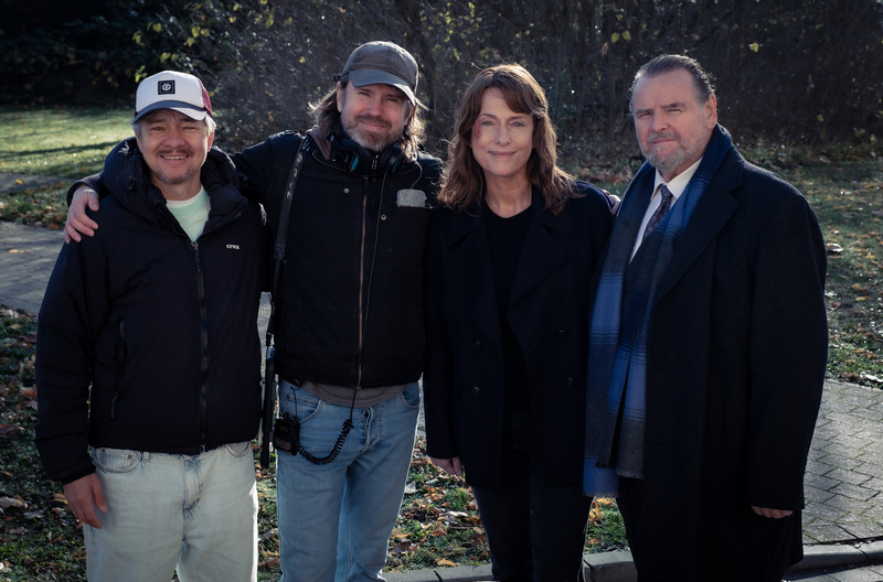 Foto v.l.: Namche Okron (Kamera), Christian Bach (Regie), Claudia Michelsen (Rolle Brasch), Felix Vörtler (Rolle Uwe Lemp) (c) MDR/42film GmbH/Conny Klein