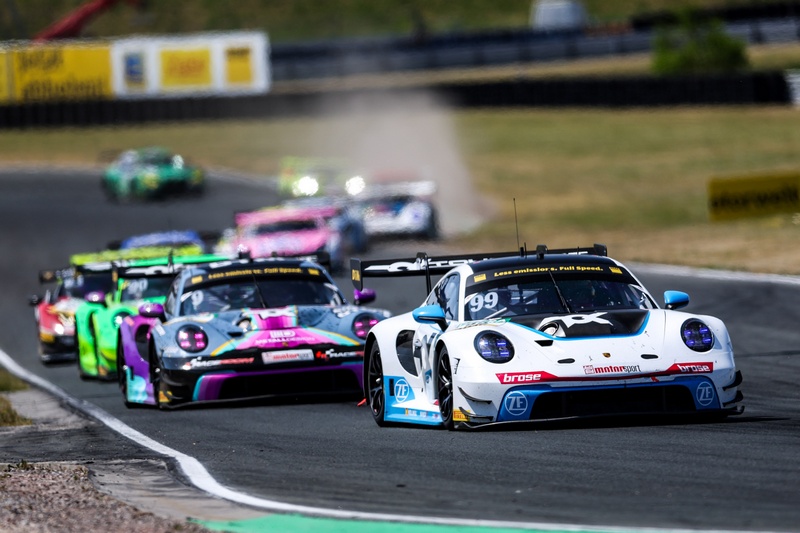 Auf Rang vier machte Dennis Olsen einen Vierfach-Triumph von Porsche perfekt, gefolgt von den Lamborghini-Fahrern Schmid und Bortolotti. Bester Audi-Pilot war wie bereits am Samstag Ricardo Feller (CH) im Audi R8 LMS GT3 Evo2 von Abt Sportsline auf Platz sieben. Jusuf Owega (Mercedes-AMG Team BWT) belegte als bester Mercedes-AMG-Fahrer nach einer starken Leistung Rang acht. Laurin Heinrich vom Team75 Motorsport wurde in einem weiterem Porsche-Fahrzeug Neunter, der Österreicher Lucas Auer (Mercedes-AMG Team Winward) erreichte im Mercedes-AMG GT3 Evo als Zehnter das Ziel. Die schnellste Runde gelang Preining mit 1:22,725 Minuten – damit sicherte sich der 24-Jährige nach den drei Punkten für die Pole-Position noch einen weiteren Zähler.