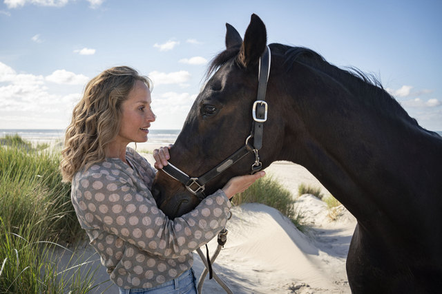 Foto: Antonia (Lara Joy Körner) auf Langeoog mit dem Zuchtpferd Paco. (c) ZDF / Georges Pauly