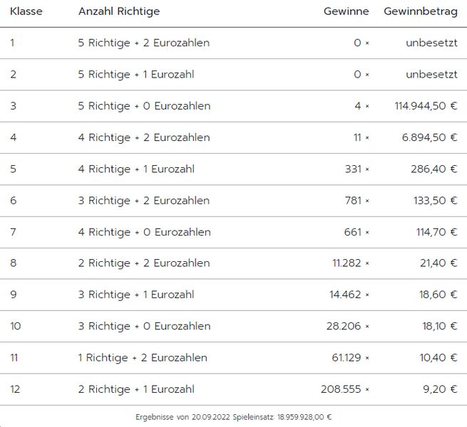 Die GlĂŒckszahlen und Gewinnquoten vom Dienstag den 20.09.2022