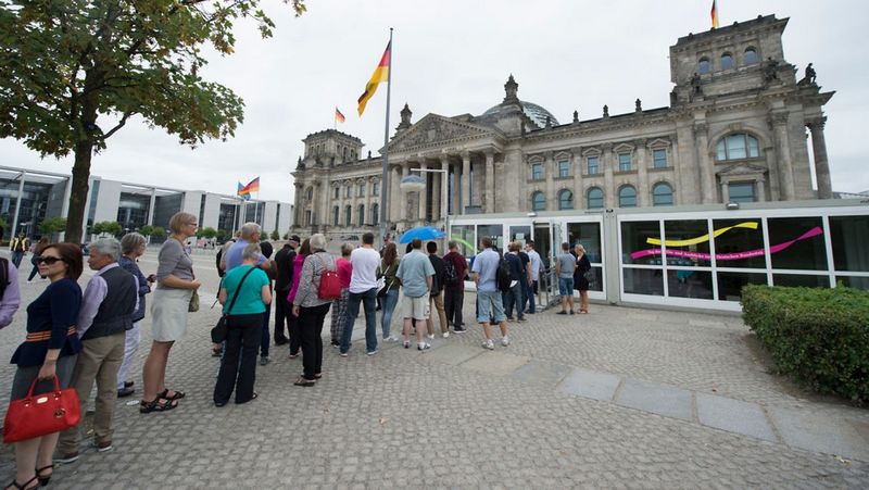 Foto: Besucher gelangen derzeit nur über eine Sicherheitsschleuse in Containern in das Reichstagsgebäude.