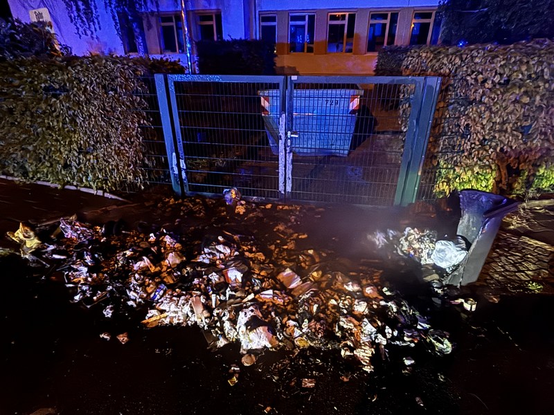 Gegen 01:05 Uhr wurde durch einen Zeugen ein Brand in der Schillerstraße gemeldet. Hier wurden drei Müllcontainer angezündet. Durch die starke Hitzeentwicklung wurden ein angrenzendes Metalltor ebenfalls beschädigt. Der Gesamtschaden beläuft sich auf ca. 1200 €. Die Feuerwher war mit einem Fahrzeug und 5 Kameraden vor Ort.