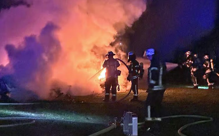 Ein aufmerksamer 62-jähriger Camper meldete gegen 06:00 Uhr der Feuerwehr und der Polizei ein Brandgeschehen in einem Vorzelt auf dem Dauercampingplatz. Nachdem die Einsatzkräfte der Feuerwehr den Einsatzort erreicht und die Brandstelle im Vorzelt lokalisiert hatten, nahmen sie unverzüglich die Löscharbeiten auf. Durch die Ausbreitung der Flammen entstand ein weiterer Schaden am angrenzenden Wohnwagen. Der 62-jährige Zeuge unternahm vor dem Eintreffen der Feuerwehr den Versuch, das Feuer mittels eines Feuerlöschers zu bekämpfen. Dabei zog er sich eine leichte Verletzung zu und musste vor Ort durch einen Rettungswagen medizinisch versorgt werden. Die Polizei leitete die erforderlichen Ermittlungen zum Brandhergang ein.