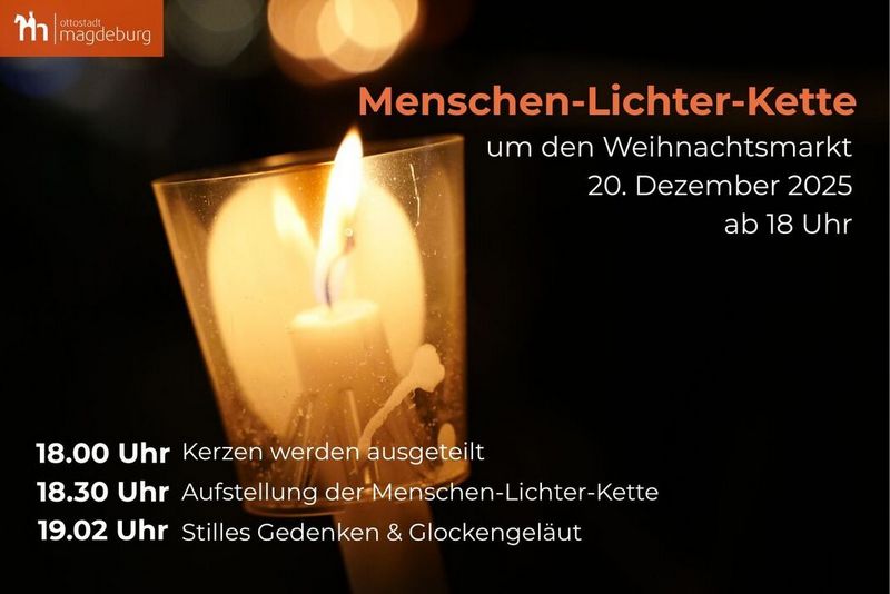 Magdeburg. Der Angriff auf den Magdeburger Weihnachtsmarkt vor einem Jahr hat in der Landeshauptstadt tiefe Spuren hinterlassen. Für die Betroffenen, ihre Angehörigen sowie viele Magdeburgerinnen und Magdeburger war der Anschlag ein tiefer Einschnitt in das tägliche Leben. Als Zeichen der Anteilnahme und Solidarität sowie zum Schutz des Gedenkorts haben die Kirchen und Religionen in Magdeburg zu einer Menschen-Lichter-Kette am 20. Dezember rund um den an diesem Tag geschlossenen Weihnachtsmarkt aufgerufen.