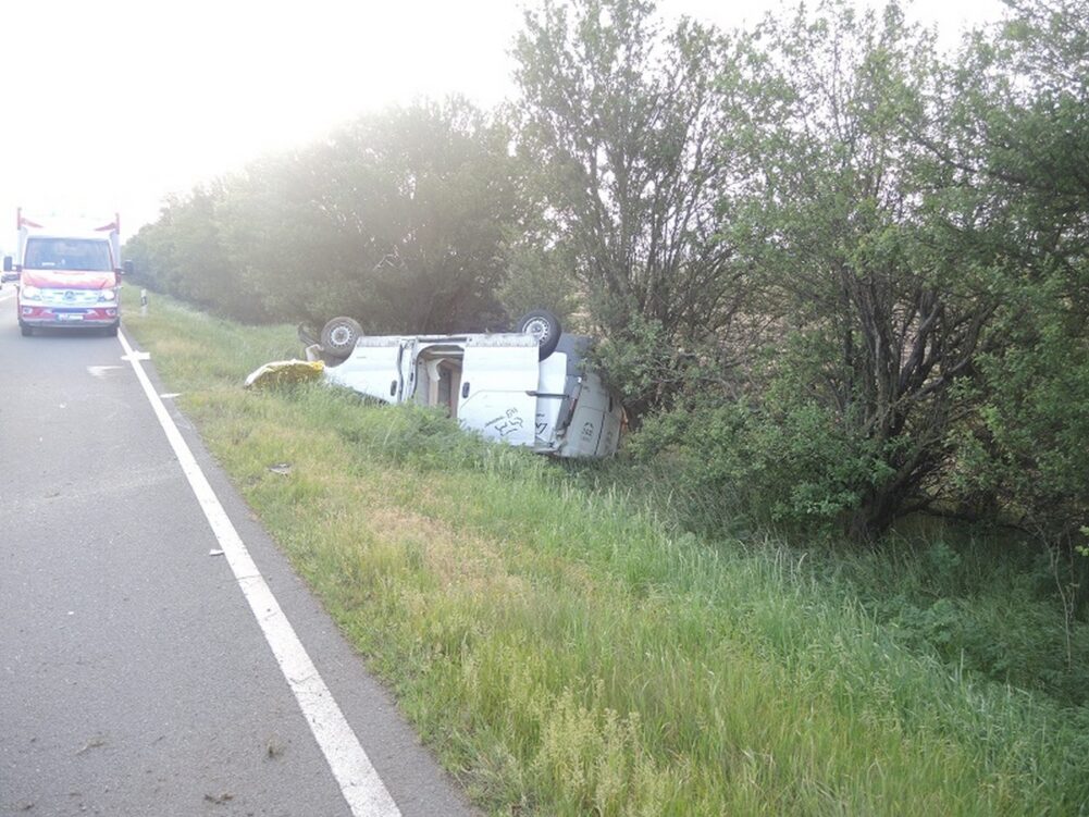 Halberstadt – Am 22.05.2022 kam es gegen 06:10 Uhr auf der B81 zwischen Wilhelmshöhe und Halberstadt zu einem Verkehrsunfall. Dort war ein Transporter Renault, der in Richtung Halberstadt unterwegs war, aus ungeklärter Ursache nach rechts von der Fahrbahn abgekommen. Beim Gegensteuern kollidierte er links mit der Leitplanke kippte um und rutschte auf dem Dach rechtsseitig in den Straßengraben. Im Kleintransporter befanden sich zwei Männer aus Halberstadt (31 Jahre alt und 23 Jahre alt) sowie ein Hund (Jack Russell). Sowohl die beiden Männer, als auch der Hund waren leicht verletzt und wurden ärztlich versorgt.