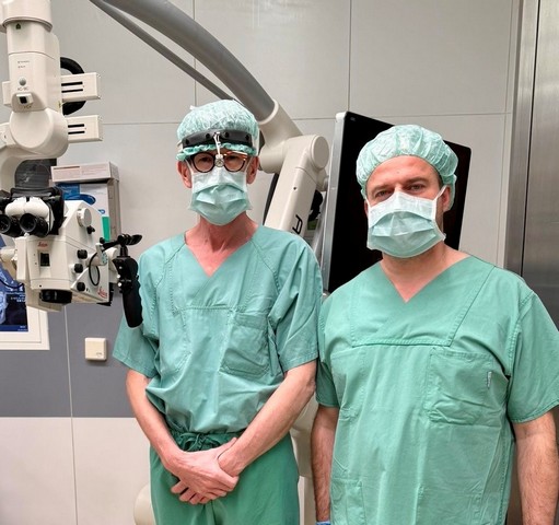Foto v.r.: Prof. Dr. Christian Scheller, Chefarzt der Klinik für Neurochirurgie und Wirbelsäulenchirurgie, sowie Dr. Christian Koch, Chefarzt der HNO. (c) Klinikum Magdeburg