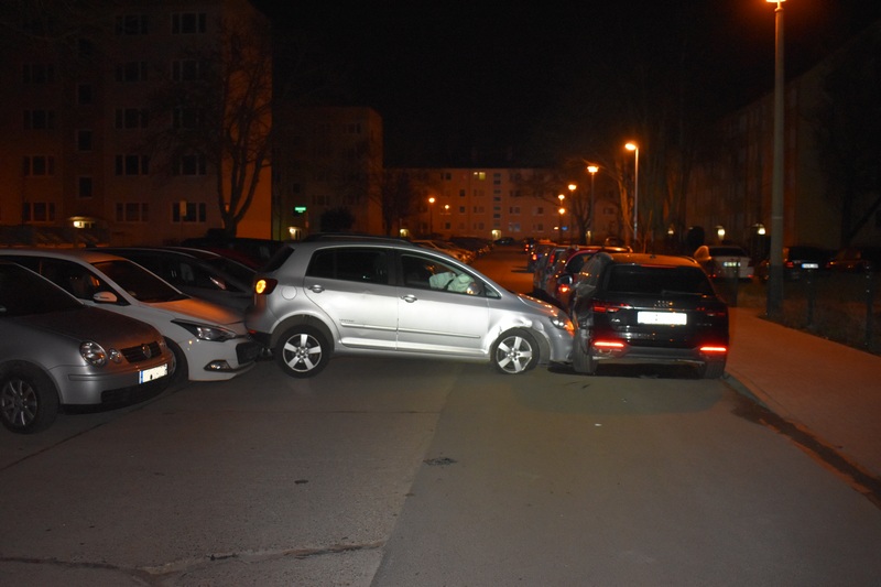 Magdeburg. Am frühen Freitagmorgen, d. 15.03.2024, ereignete sich gegen 00:45 Uhr ein Verkehrsunfall der kuriosen Art. Ein 33-jähriger Halberstädter verursachte unter erheblichen Alkoholeinfluss mit seinem PKW Golf einen ungewöhnlichen Verkehrsunfall in Fröbelstraße, bei dem drei weitere geparkte Fahrzeuge beschädigt wurden.