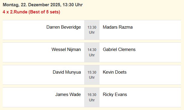 SPORT1 setzt die lange Darts-Tradition fort und überträgt die PDC Darts-Weltmeisterschaft zum 22. Mal live. Vom 11. Dezember 2025 bis zum 3. Januar 2026 verwandelt sich die legendäre Bühne des Londoner Alexandra Palace wieder in den Schauplatz für die besten Dartsspieler der Welt. Titelverteidiger ist Luke Littler.