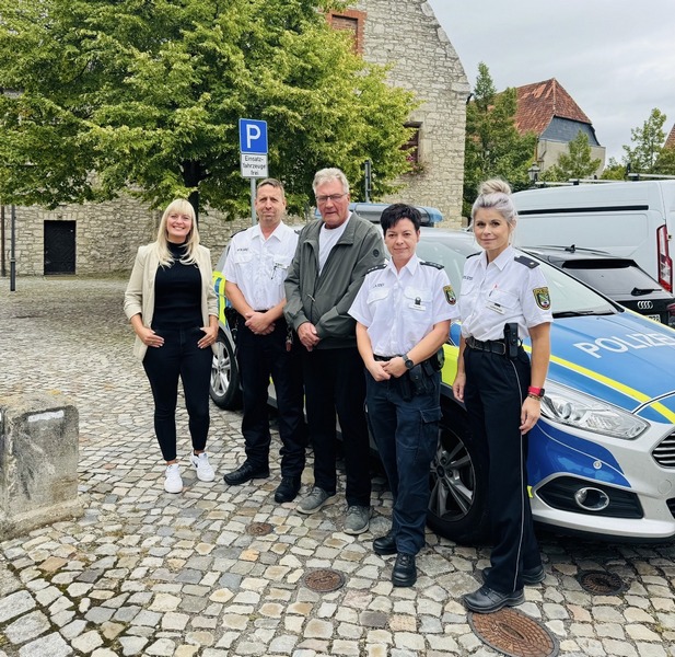 Foto: Begrüßung der RBBs in Wegeleben (v.l. Frau Reimann, PHM Rohmann, Herr Liebner, PHKin Brocka und Kriminalrätin Sünnemann)