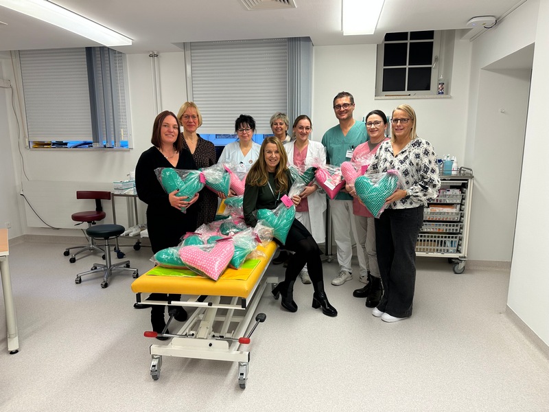 Prof. Dr. med. Atanas Ignatov, Direktor der Universitätsfrauenklinik, nahm die Herzkissen ebenfalls mit Dank entgegen. „Wir wissen, wie wichtig es für unsere Patientinnen ist, dass wir ihnen in dieser schwierigen Zeit beistehen. Die Herzkissen sind eine wunderbare