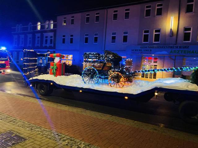 Rund 30 festlich geschmückte Fahrzeuge werden mit eingeschaltetem Blaulicht durch das Stadtgebiet von Halberstadt fahren.