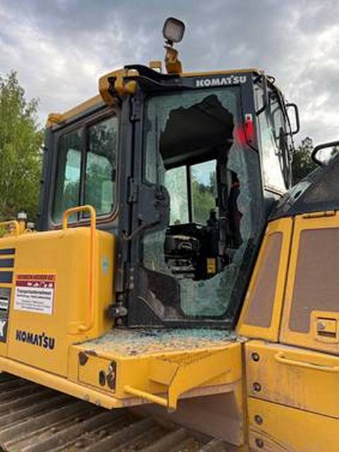 Seitenscheibe von Baufahrzeug beschÀdigt