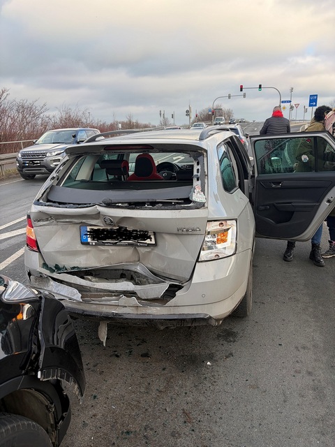 Wernigerode – Am 13.12.2025 kam es gegen 11:15 Uhr am Ortseingang zu einem Verkehrsunfall mit drei beteiligten Pkw. Die drei Pkw waren auf der L82 aus Richtung Silstedt kommend, unterwegs. An der Lichtzeichenanlage Halberstädter Str. (Ortseingang) hielten sowohl ein 57-jähriger Mann aus Meerane mit seinem Pkw Mazda als auch ein 37-jähriger Mann aus Pirna mit seinem Pkw Skoda. Dies bemerkte ein 84-jähriger Mann aus Wernigerode zu spät, und fuhr mit seinem Pkw Toyota auf den Skoda, der wiederum gegen den vor ihm haltenden Mazda geschoben worden ist.