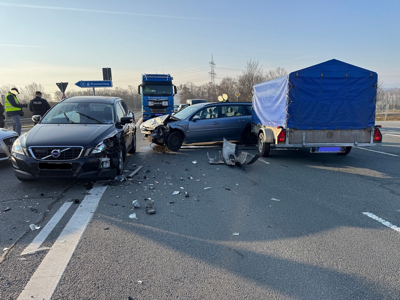 Nach bisherigen Erkenntnissen befuhr ein 67-jähriger mit seinem PKW-Opel die Bundesstraße 79 aus Richtung Halberstadt und beabsichtigte auf die Autobahnauffahrt der A36 nach links in Richtung Braunschweig zu fahren. Beim Abbiegevorgang übersah er den entgegenkommenden, vorfahrtberechtigten 55-jährigen mit seinem PKW-Volvo, welcher die B 79 in Richtung Halberstadt befuhr. Es kam zum Zusammenstoß, bei dem keine Personen verletzt wurden. Am Opel entstand Sachschaden von ca. 10.000 Euro und am Volvo von schätzungsweise 15.000 Euro. Beide Fahrzeuge waren nicht mehr fahrbereit und mussten abgeschleppt werden.