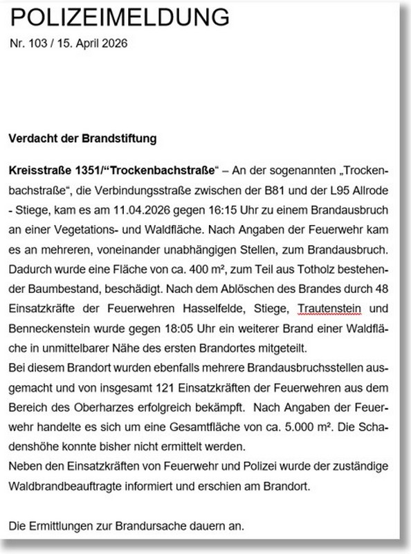 Quelle: Polizeirevier Harz am 15. April 2026