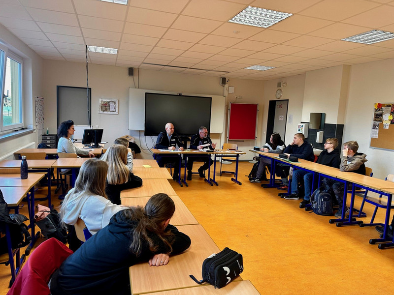 Auf Einladung der Gemeinschaftsschule Möckern besuchten die Regionalbereichsbeamten die 8. Klasse, um sich den Fragen der Schüler zu stellen. Im Rahmen des Sozialkundeunterrichtes konnten sich die Schüler im Vorfeld auf die Befragung der Kollegen vorbereiten. So konnten die Polizeibeamten in der kurzweiligen Stunde aus ihrem Berufsleben berichten und zu Themen wie Jugendstrafrecht, Umgang mit Böllern aber auch die Frage „Was macht die Polizei, wenn nichts los ist?“ Rede und Antwort stehen. (Foto: Polizei)