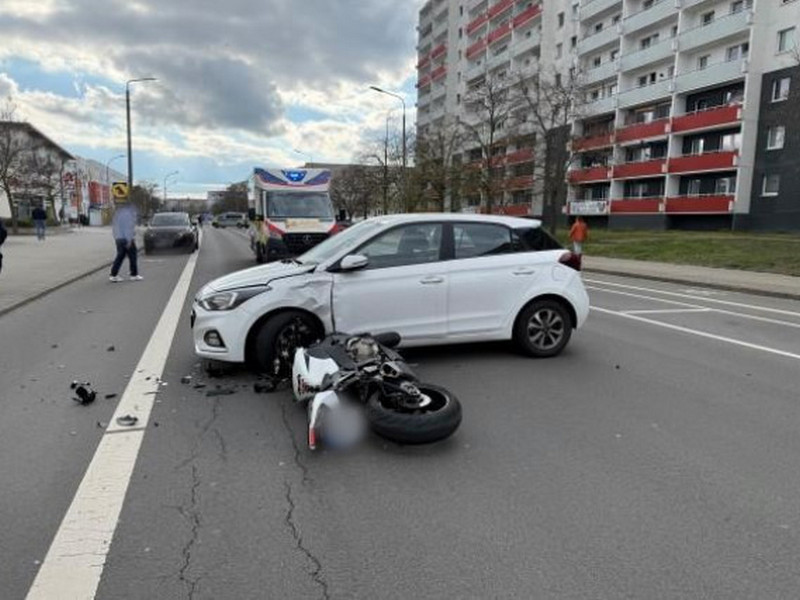 Ein 72-Jähriger fuhr mit einem Personenkraftwagen Hyundai i20 aus einer Parklücke in der Stadtseeallee auf die Fahrbahn. Dabei übersah er den 24-jährigen Motorradfahrer, welcher die Stadtseeallee aus Richtung Moltkestraße befuhr. Trotz Gefahrenbremsung des Motorradfahrers kam es zum Zusammenstoß der beiden Fahrzeuge. Der 24-jährige Motorradfahrer zog sich leichte Verletzungen und der 26-jährige Sozius schwere Verletzungen zu. Beide wurden anschließend mittels Rettungswagen in ein Krankenhaus verbracht. Das Motorrad musste durch ein Abschleppunternehmen geborgen werden.