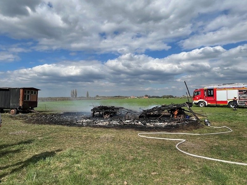 Foto: Abgebrannter Wohnwagen / Polizeirevier Stendal