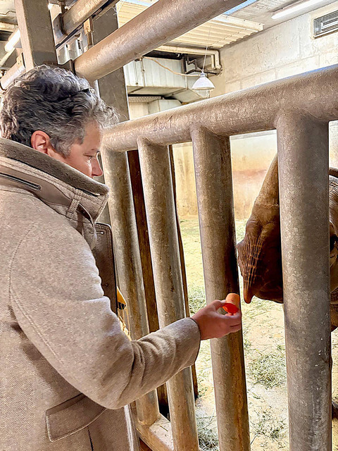 Foto 2: Spitzenpolitikerin füttert Spitzmaulnashorn: Lydia Hüskens hatte die Tierpatenschaft für die 2023 geborene Malia im Zoo Magdeburg übernommen. Nun hieß es: Abschied nehmen.