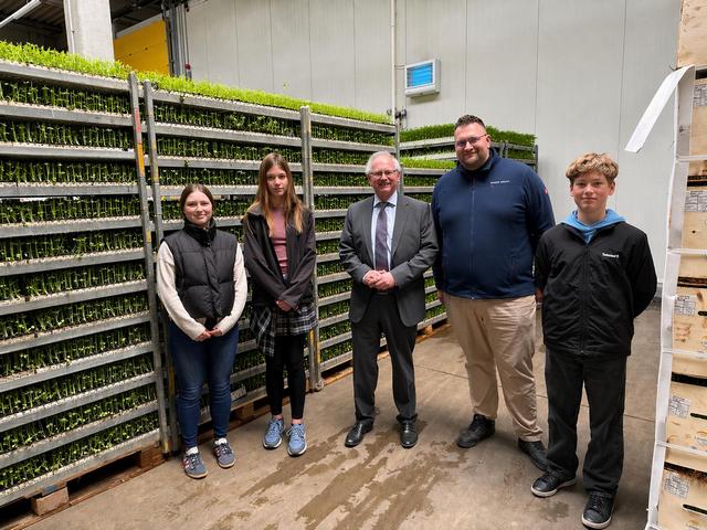 Besonders spannend war die Exkursion mit Staatssekretär Gert Zender in den Bördegarten Arensdorf, wo sie hautnah erleben konnten, wie landwirtschaftliche Produktion funktioniert und wie nachhaltig sowie innovativ gewirtschaftet wird. Der Bördegarten beliefert den regionalen Lebensmitteleinzelhandel mit frischem Gemüse und Obst und bildet unter anderem Fachkräfte für Agrarservice und Tierwirte in der Fachrichtung Geflügel aus.