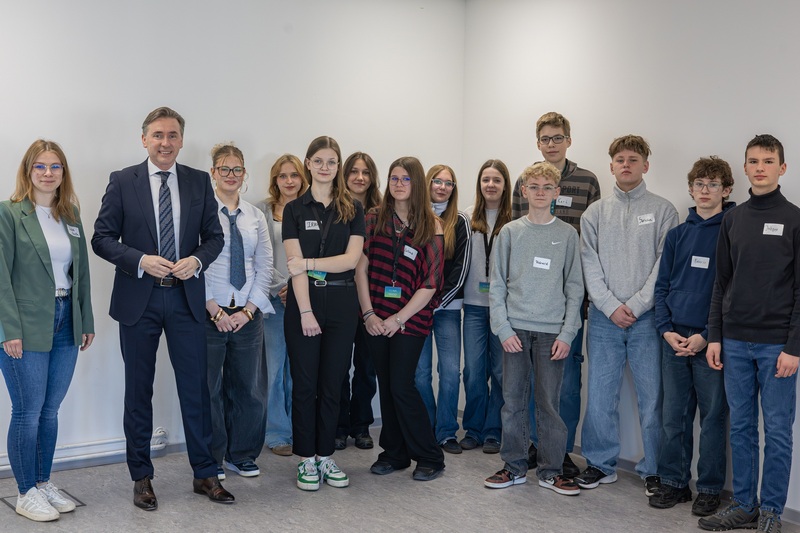 Zum Auftakt wurden die Jugendlichen von Staatssekretär Thomas Wünsch begrüßt – er gab einen kurzen Überblick über die Arbeit des Ministeriums und betonte: „Das MWU gestaltet Zukunftsthemen unserer Zeit – von nachhaltiger Energieversorgung und Klimaschutz über den Ausbau einer leistungsfähigen Wissenschaftslandschaft bis hin zum Schutz von Natur und Umwelt. Wer seinen Zukunftstag sinnvoll nutzen möchte, ist bei uns im Zukunftsministerium also goldrichtig.“