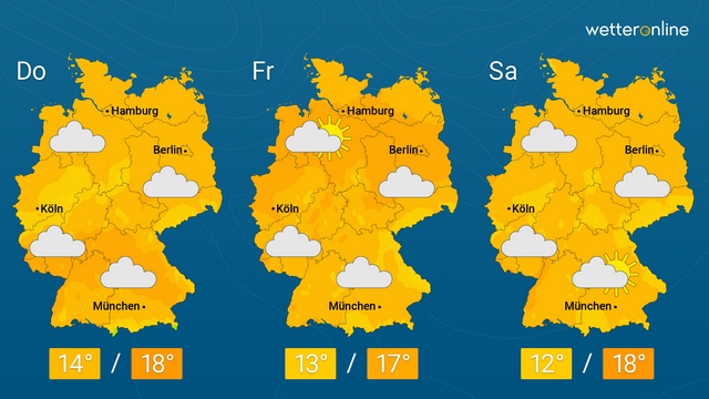Lediglich im Norden und im SĂŒden sind zeitweise ein paar WolkenlĂŒcken dabei. Die Höchstwerte pendeln dabei um 15 Grad, dort wo die Sonne etwas lĂ€nger scheint, wird es etwas milder.