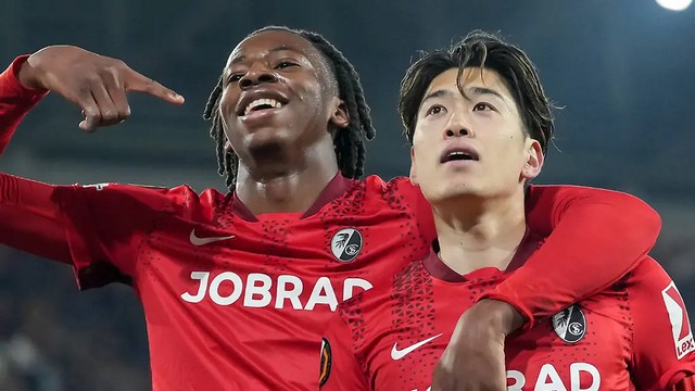 Foto: Johan Manzambi und Yuito Suzuki vom SC Freiburg freuen sich über den Einzug ins Viertelfinale. (c) RTL