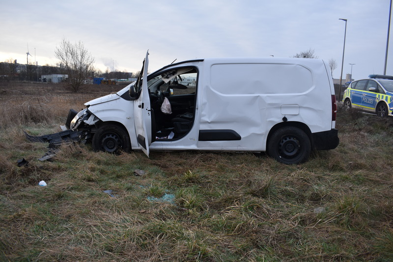 Magdeburg. Am Dienstag, dem 17.03.2026, ereignete sich gegen 07.00 Uhr ein Verkehrsunfall im Gewerbegebiet Nord mit einem allein beteiligten Transporter.