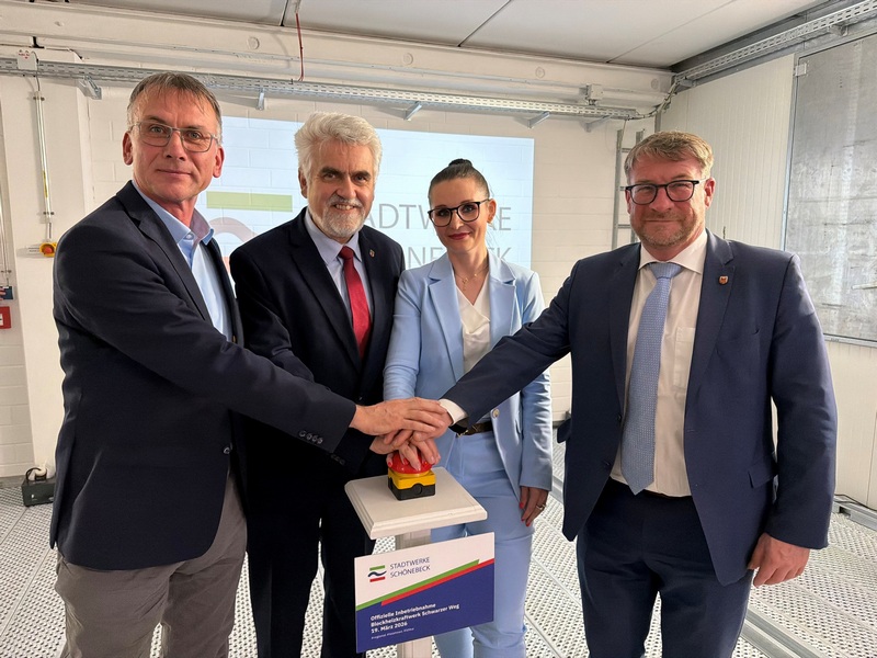 Gut 7.000 Kunden der Stadtwerke Schönebeck werden künftig noch effizienter mit Strom und Wärme versorgt. Nach zehn Monaten Bauzeit hat das modernisierte Blockheizkraftwerk am Schwarzen Weg den Betrieb aufgenommen. Den offiziellen Startschuss gab Sachsen-Anhalts Energieminister Prof. Dr. Armin Willingmann am heutigen Donnerstag gemeinsam mit Stadtwerke-Geschäftsführerin Julia Teige sowie Schönebecks Oberbürgermeister Bert Knoblauch.